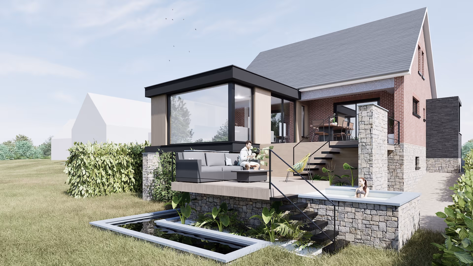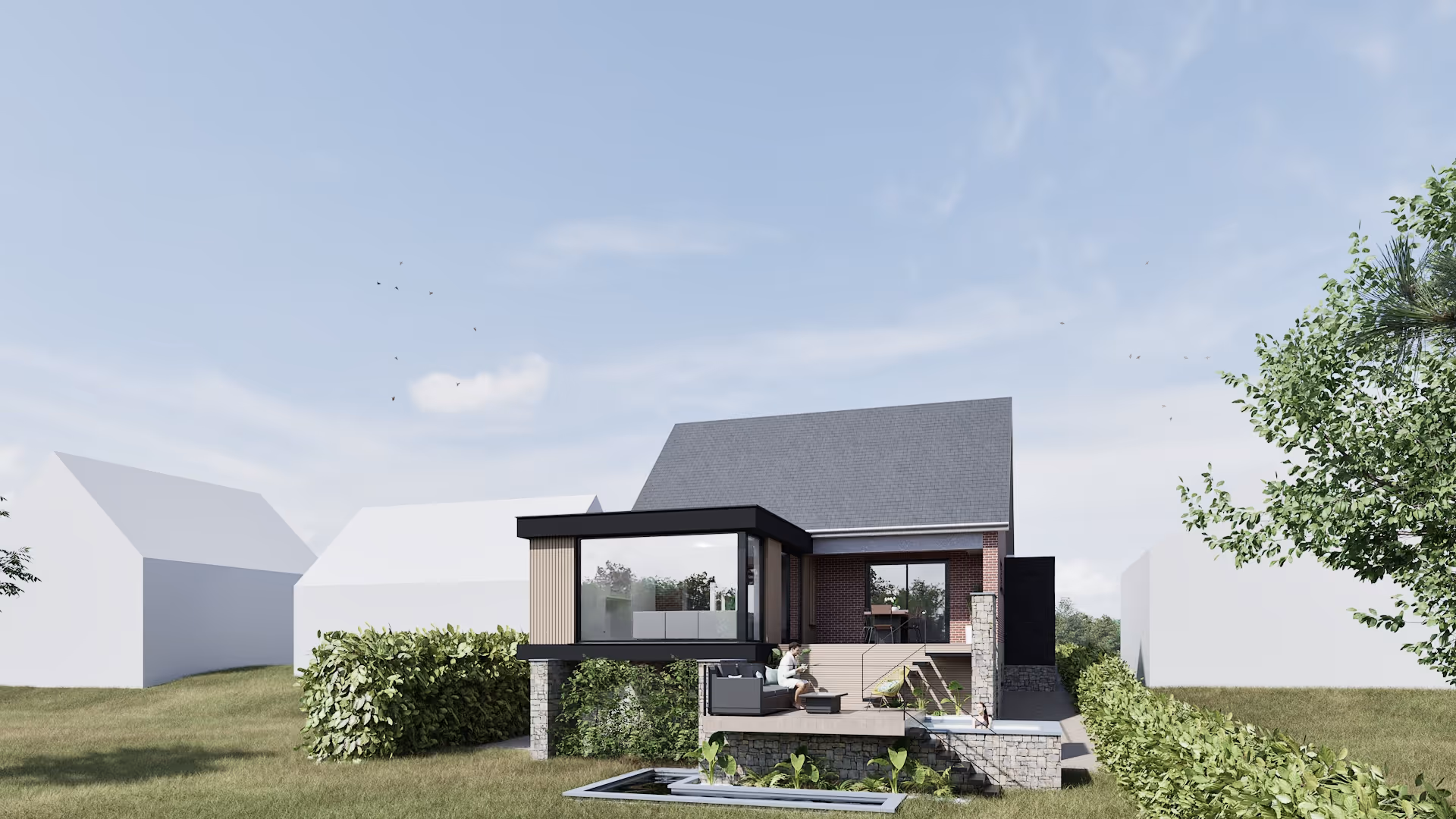 Le projet consiste en l’extension de l’école existante, pensée pour créer un lien constant entre les espaces d’apprentissage et la nature. Les volumes sont travaillés en dialogue avec la végétation environnante et l’orientation du soleil, afin d’offrir des lieux lumineux, ouverts et en relation directe avec l’extérieur.
